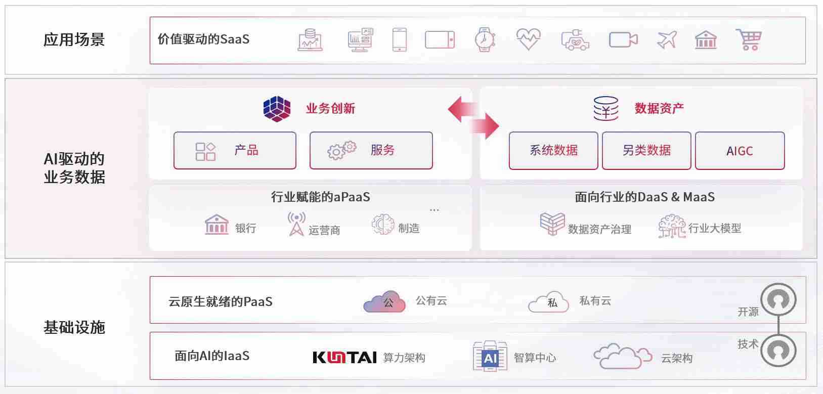 数字时代,,,,围绕企业数字化转型的关键要素,,,,234钱包数码开创性的提出数云融合战略和技术体系框架,,着力在云原生、、、、数字原生、、、AI原生和信创产业上架构产品和服务能力,,为处在不同数字化转型阶段的快消零售、、、、汽车、、金融、、医疗、、、政企、、教育、、、运营商等行业客户提供泛在的敏捷IT能力和融合的数据驱动能力,,构建跨界融合创新的数字业务场景和新业务模式,,,,助力企业级客户建立面向未来的核心能力和竞争优势,,,,全面推动社会的数字化、、、、智能化转型升级。。。